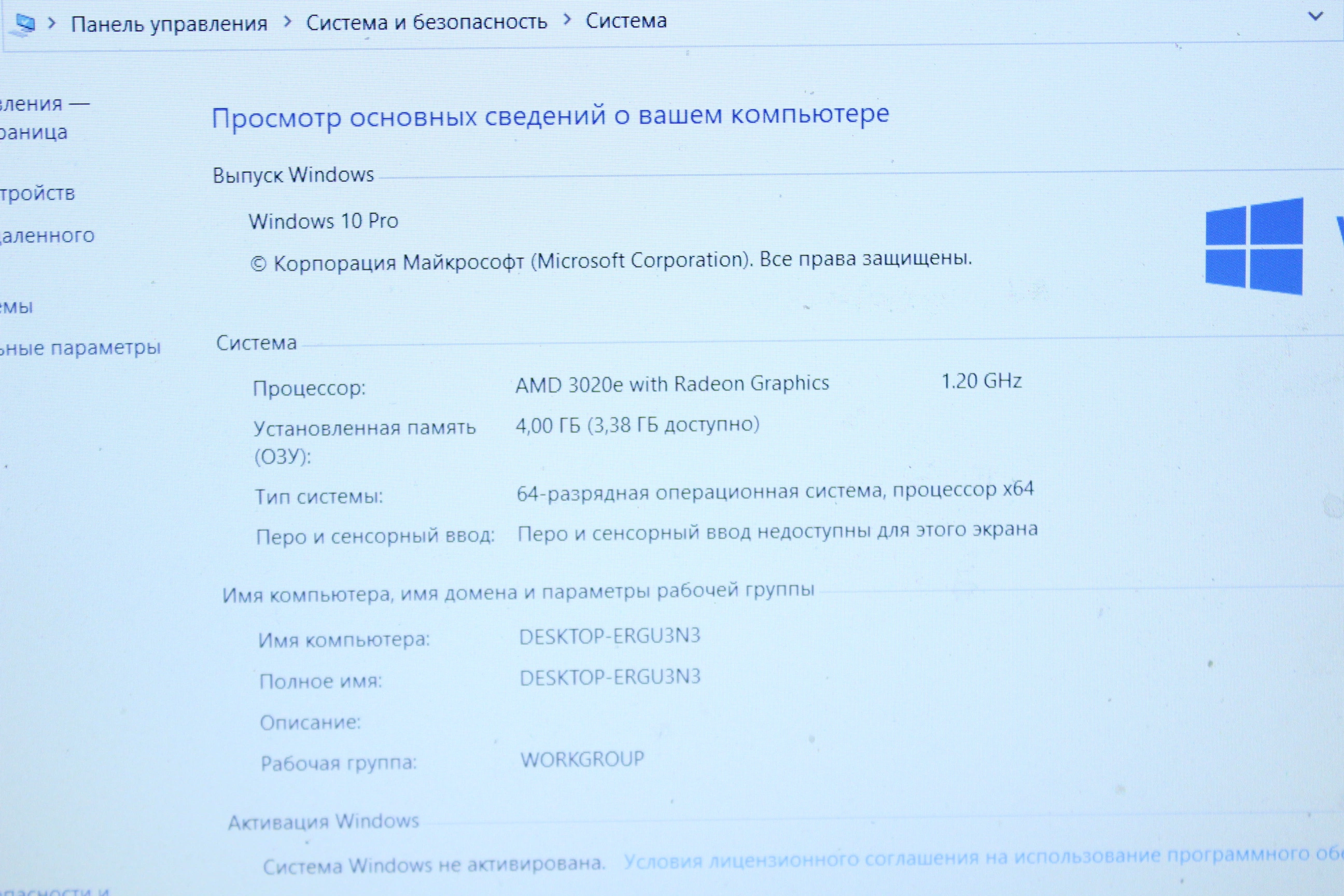 Характеристики: 15.6" 1920 x 1080, TN+Film, 60 Гц, AMD 3020e, 4 ГБ DDR4, SSD 256 ГБ, видеокарта встроенная